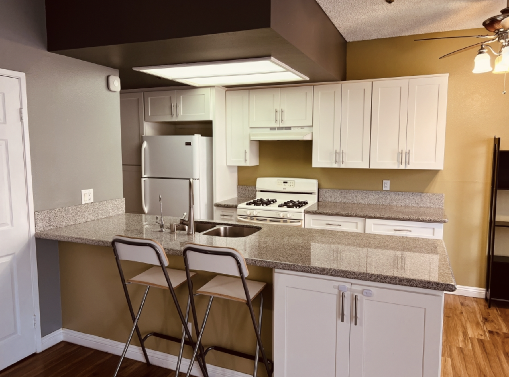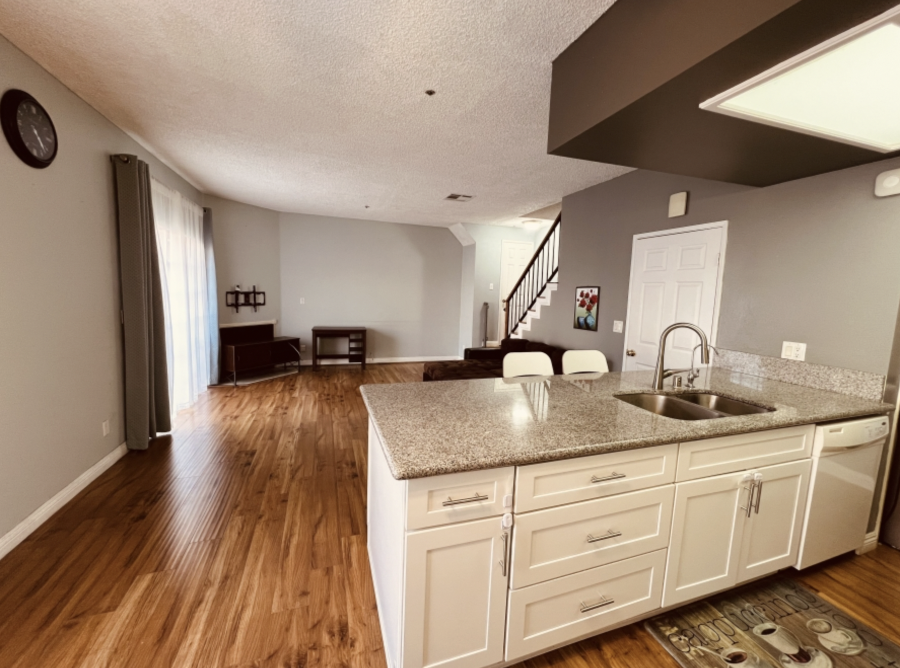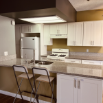 It comes with kitchen cabinets and granite counter tops,