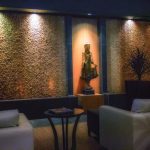 Founded in 2006, Dtox day spa makes up 6,200 square-feet of unparalleled zen. Exposed brick masonry walls, 20-foot high vaulted ceilings, wood beams concrete floors to create the ultimate spa experience. Aiming to incorporate elements of water, earth, fire air; the environment has a feel of Asian minimalism mixed with Indonesian flare, Bamboo paneling adorns the walls and sink tops, not just for their warm feel, but also their eco-friendly renewable reputation while low VOC paint was used to calm the senses. Lit candles in every massage and treatment room help create a relaxing glow and in the center atrium, where a giant Buddha shares space with a 15-foot double waterfall welcomes guests to relax on chaise lounges, bathed in sunlight from skylights above and enjoy fresh fruit, brownies, organic teas & fruit-infused water.