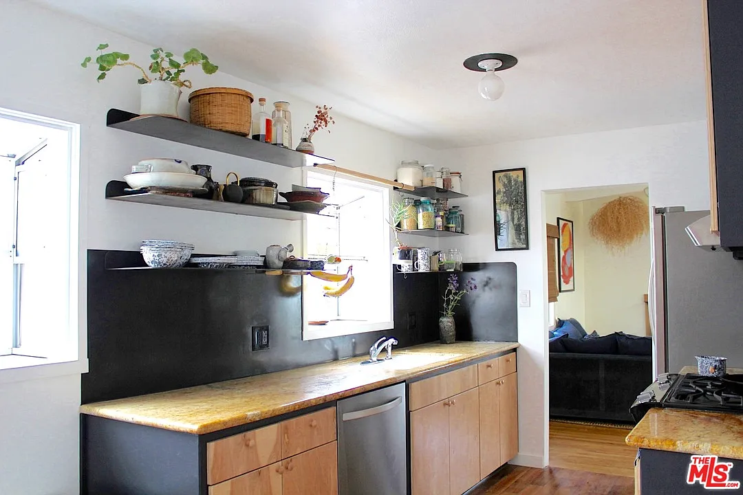 Unique mid-century modern property, home of a welder/carpenter and a textile/ceramic artist. This 2 bed/2 bath has been completely updated; Post and beam ceiling in the living room, upgraded kitchen with custom blackened steel shelving & backsplash. Newly remodeled bathrooms are clean and bright with plenty of storage. Sunroom/3rd bedroom(currently used as a weaving studio) offers over 200 sf of bonus living space. Features include stained glass clerestory windows, solid birch veneer doors, sliding door on track, window shades, built in closets and steel planters in front and back yards. Established native California and drought tolerant gardens grow all year round with little watering. Lavender, sage, rosemary and a beautiful Palo Verde tree liven the property. In the backyard, a 9′ x 13′ workshop with large circular window has been built – perfect for an artist, office or kids’ play area. Close to Big Tujunga Canyon, shopping, Back Door Bakery, Link N’ Hops and Farmer’s Market.
