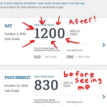 Guarantee: -Payment due AFTER student takes the SAT -Failure to meet guaranteed score: NO charge -Trial period: 2 sessions before signing contract, no questions asked if back out Tutor Credentials: -99th percentile scorers -5 years teaching SAT minimum -We ONLY focus SAT (no AP, no academic subjects, no college courses/exams) -Tutors are full time (no “gig” tutors, no students), and therefore fully committed their teaching craft -Top university grads (Ivy league, UChicago, MIT, Caltech) -High college/graduate GPAs -Many advanced degrees (Master’s/PhD., B.Ed., M.Ed.) -Charismatic and patient, selected not only for their high test scores but ability to teach and transmit that knowledge to others Features: -Online via Zoom, all sessions recorded -Number/length of sessions to be determined per student. No one-size-fits-all program -Text/email support: 12-hour response time -Parent updates: receive regular communication on child’s progress and study plans -Accountability system: Regular text check-ins, helping them stay on top of homework, tutoring experience, and progress. -Work around the students’ schedules (Evening, weekends, early mornings)